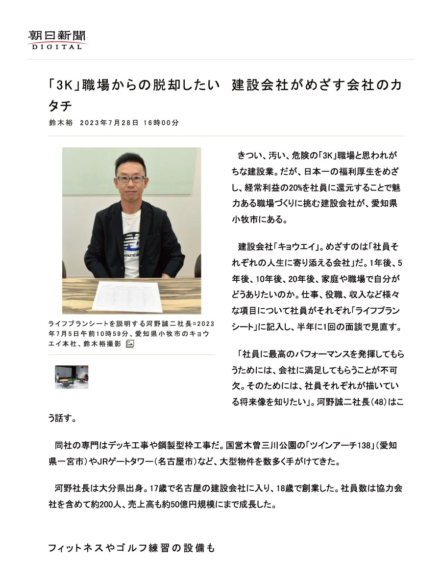「3K」職場からの脱却したい 建設会社がめざす会社のカタチ